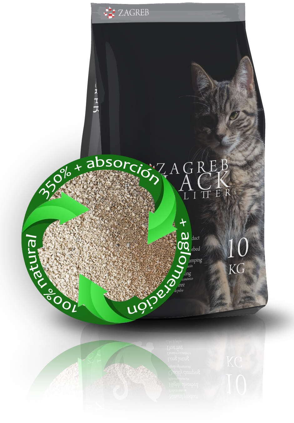 Con arcilla de bentonita como ingrediente principal, Esta arcilla de origen natural y usado principalmente para la cosmética, permite que ZAGREB BLACK CAT LITTER tenga una gran absorción y aglomeración haciendo más fácil limiar la caja de arena de tu gato.